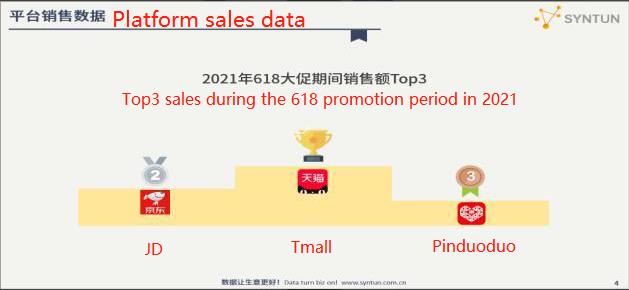 According to the online sales monitoring data from “Starmap Data” during the 2021’s 618 Sales Period (from 00:00 June 1, 2021 to 24:00 June 18, 2021), the total volume of online transactions was 578.48 billion yuan, up 26.5% when compared to 2020’s data. Tmall remained at the top, followed by JD and Pinduoduo in sales volume.